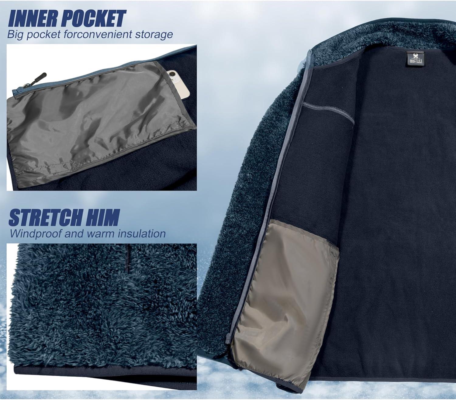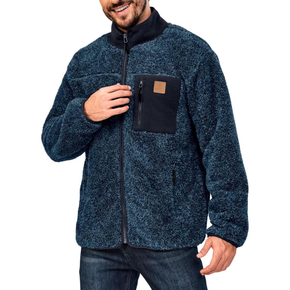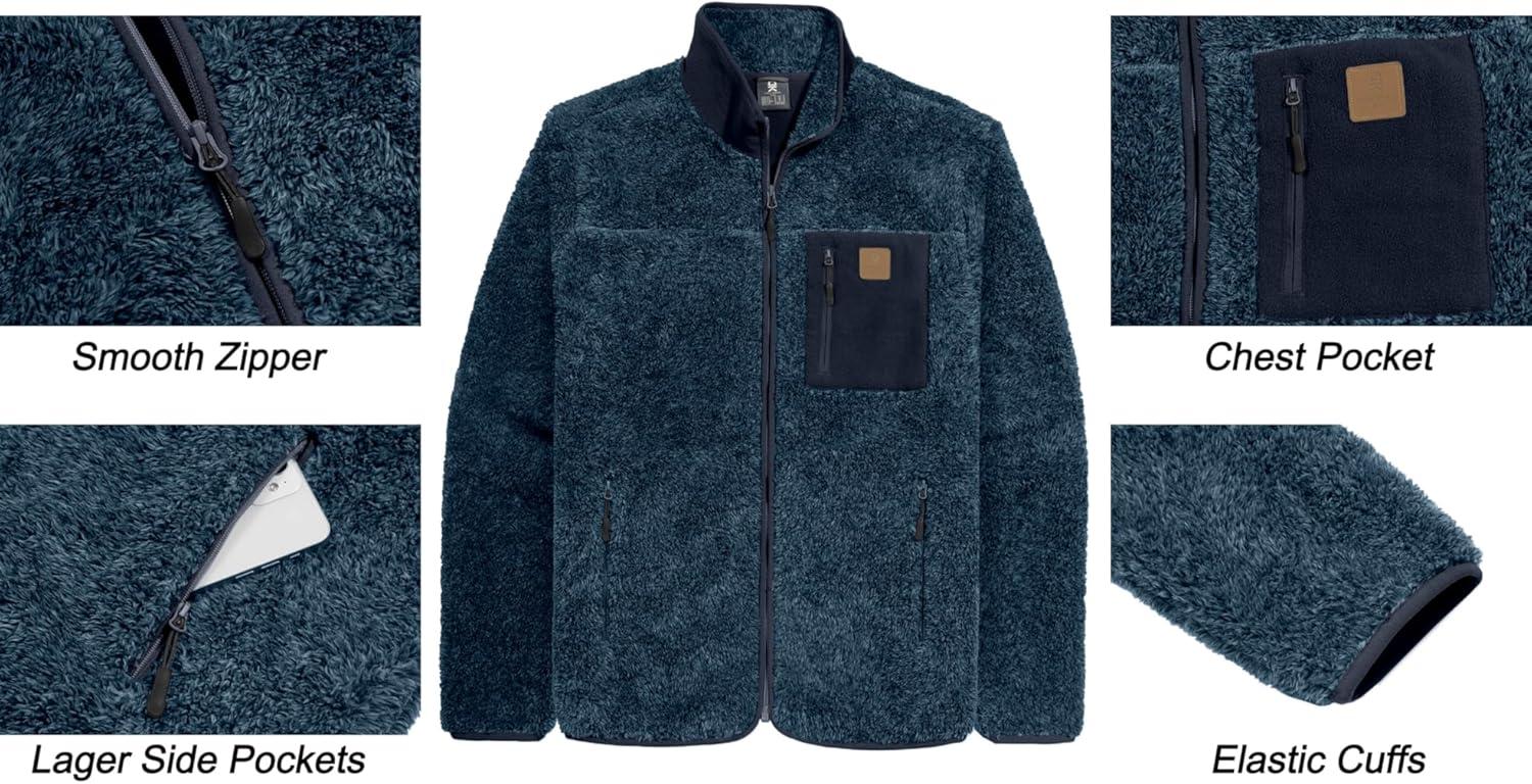 Little Donkey Andy Men’s Fleece Lined Jacket Fuzzy Sherpa Full Zip Thermal Coat Lightweight Outwear for Fall Winter(Dark Blue)