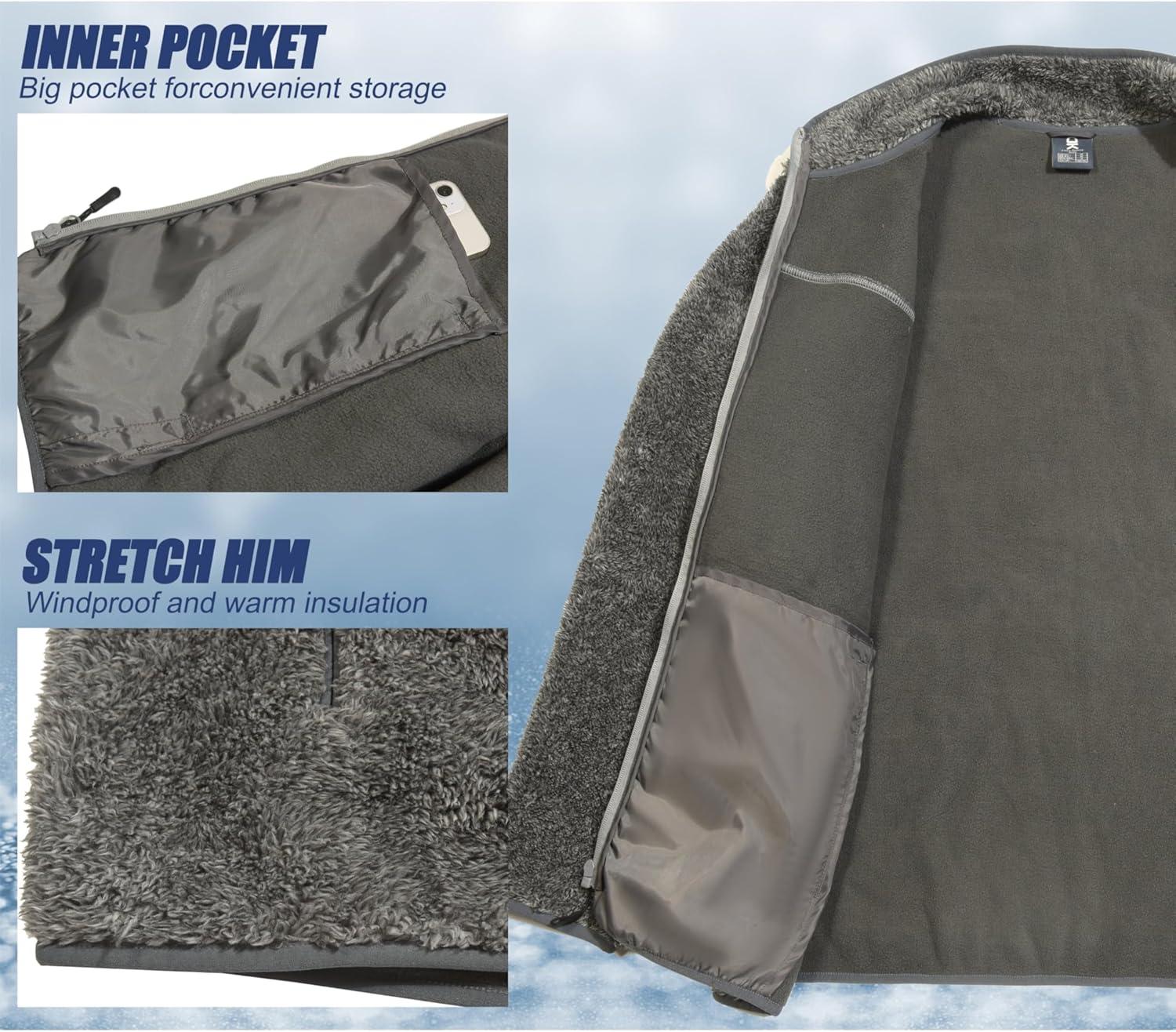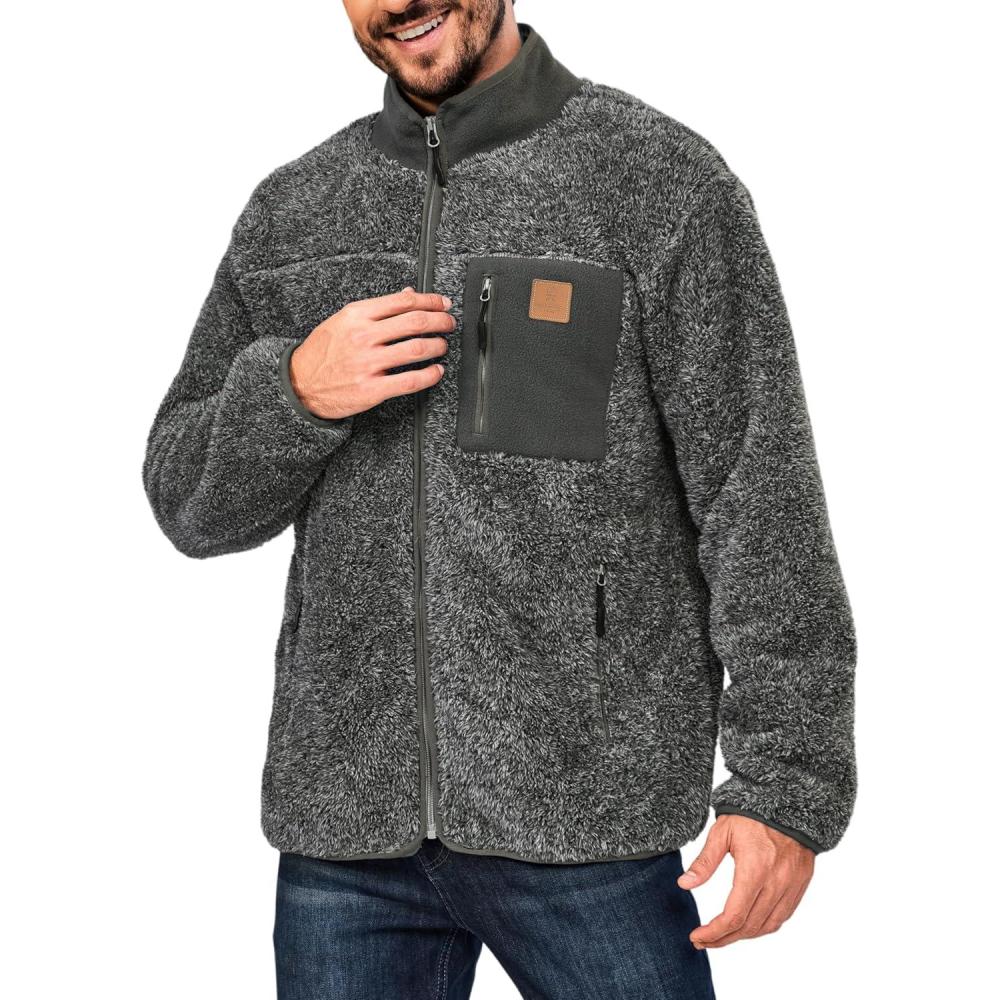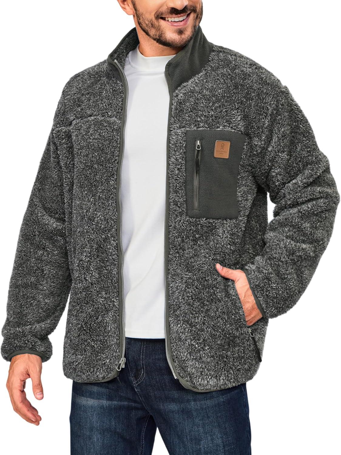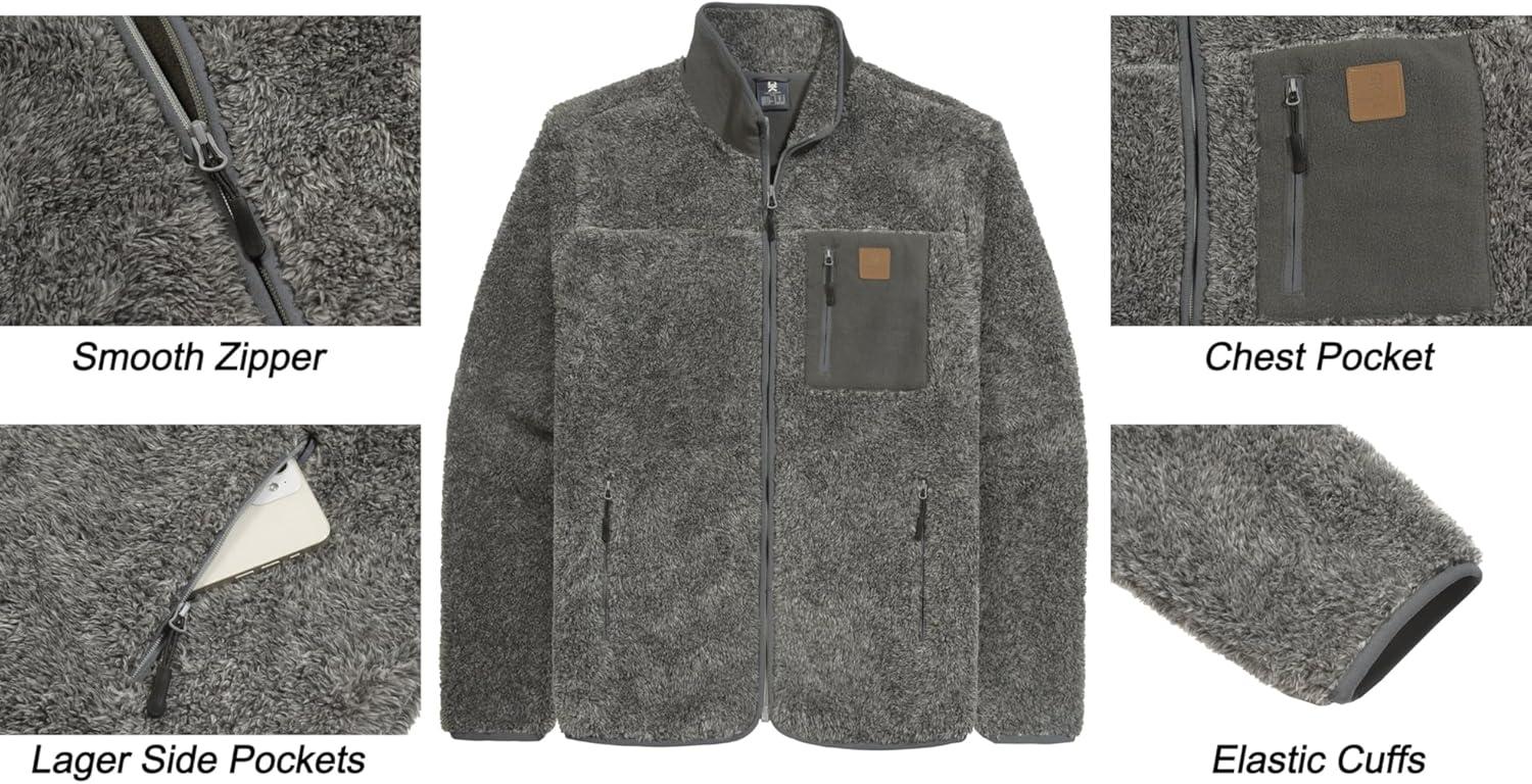Little Donkey Andy Men’s Fleece Lined Jacket Fuzzy Sherpa Full Zip Thermal Coat Lightweight Outwear for Fall Winter(Pure Gray)