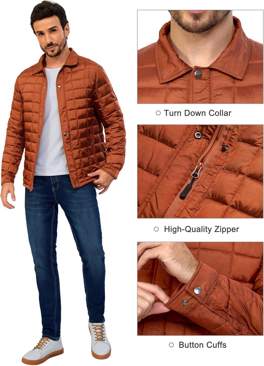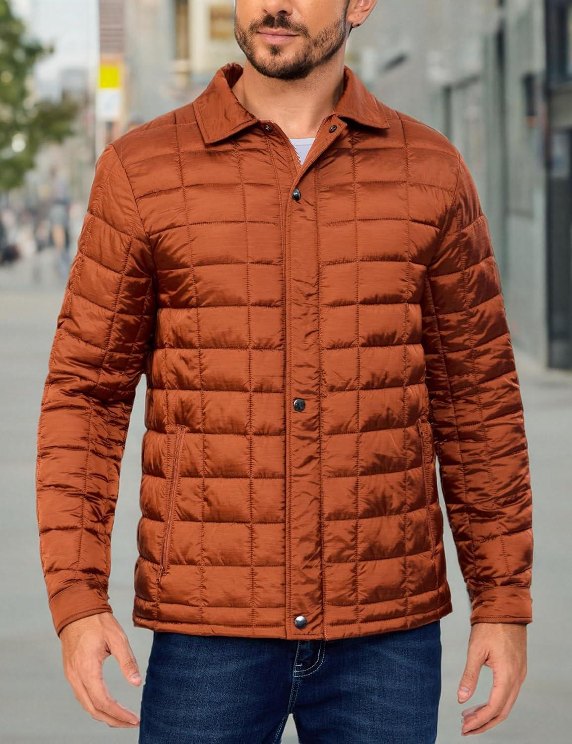 Little Donkey Andy Men’s Lightweight Quilted Puffer Jacket Windproof Thermal Winter Coat with Recycled Insulation(B-orange)