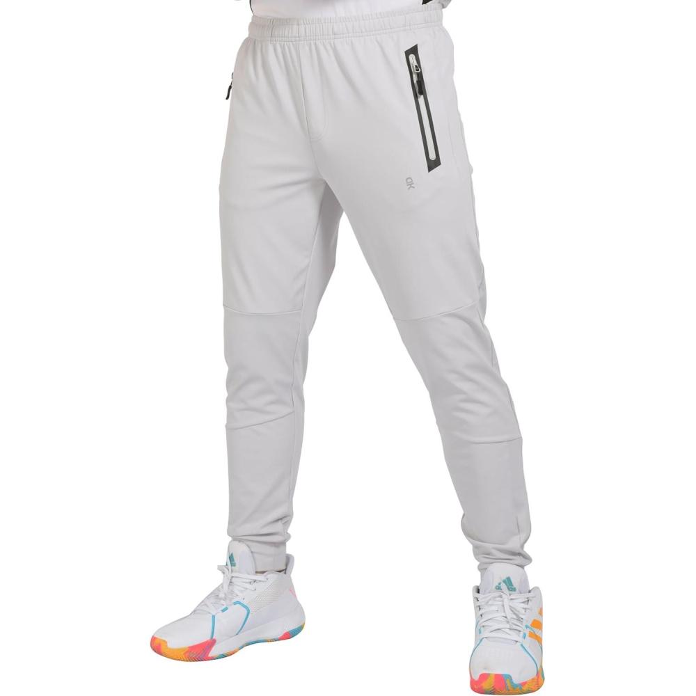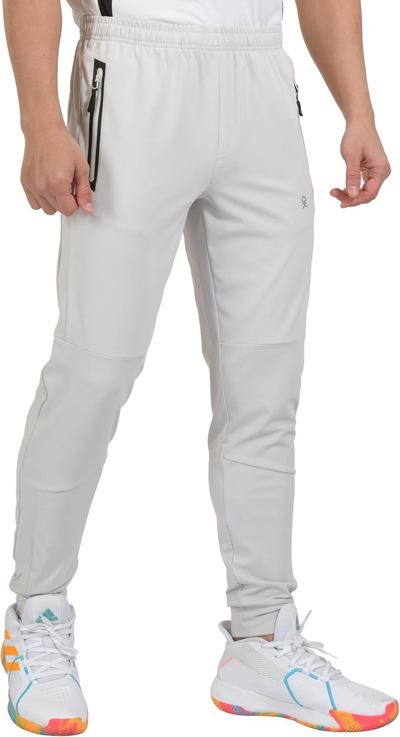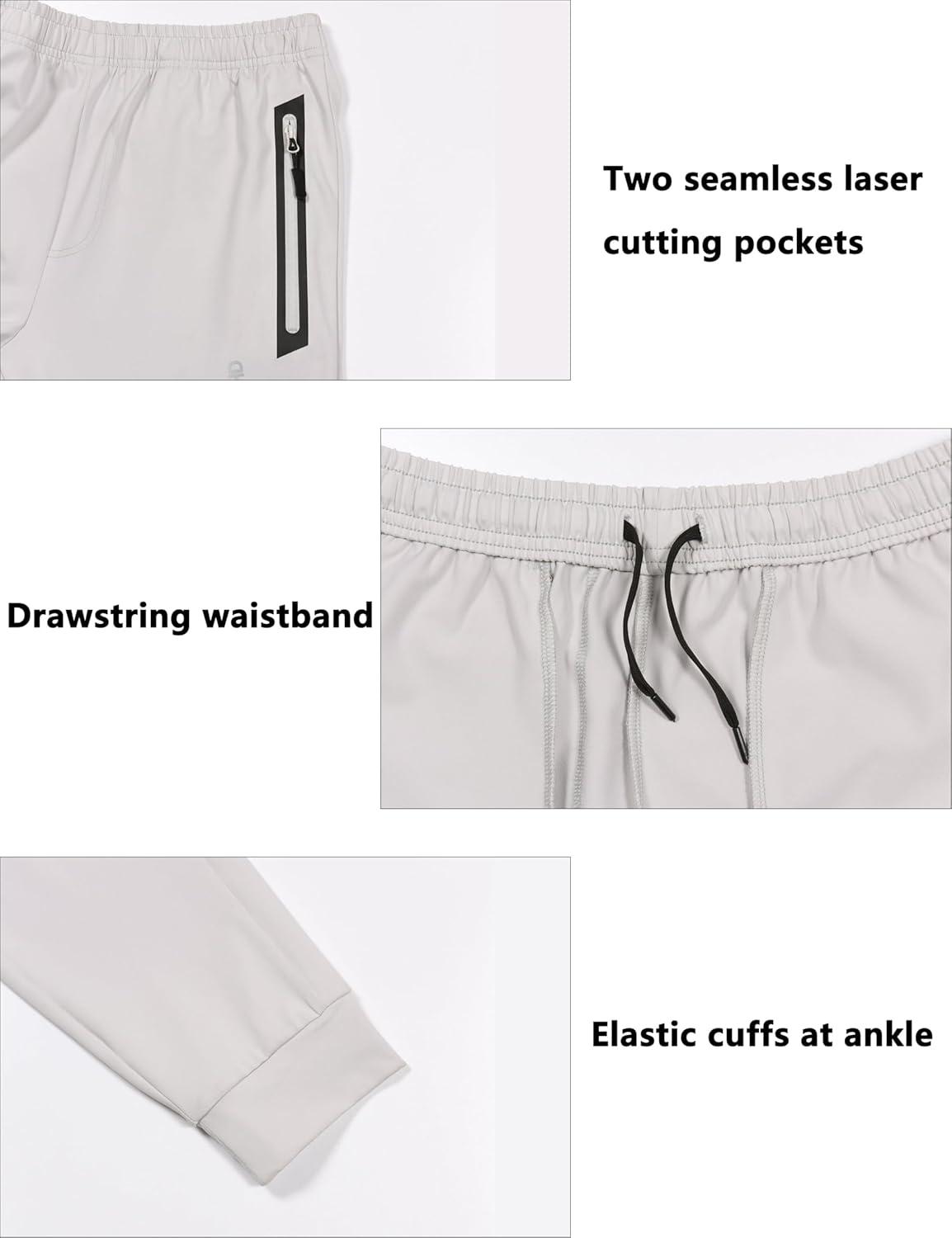 Little Donkey Andy Men’s Lightweight Tapered Joggers, Quick-Dry Stretch Athletic Track Pants for Running, Gym, and Training(3.grayish-white)