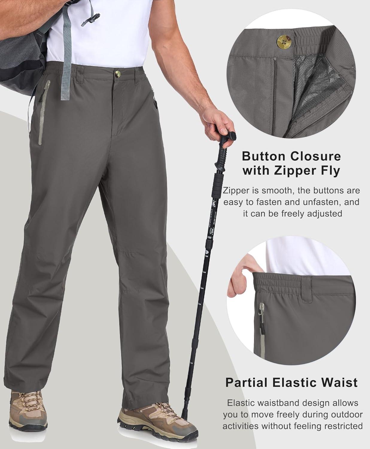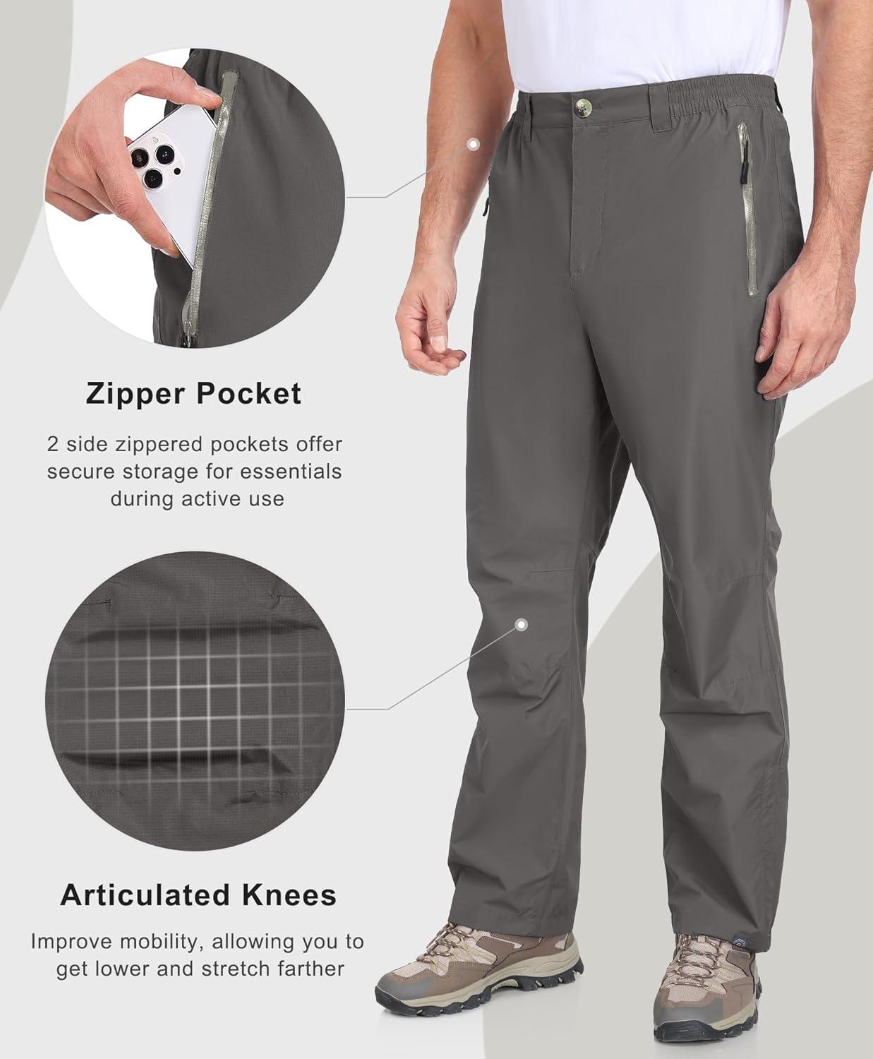 Little Donkey Andy Men’s Rain Waterproof Golf Pants for Men, Lightweight Windproof Outdoor Fishing Hiking Pants(Pewter)