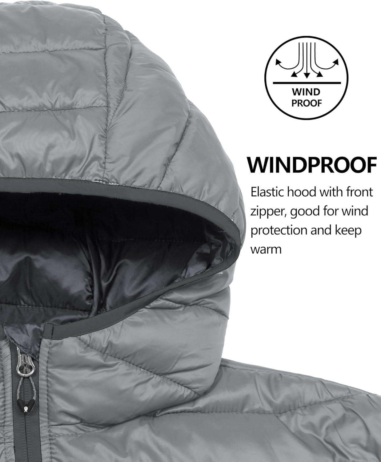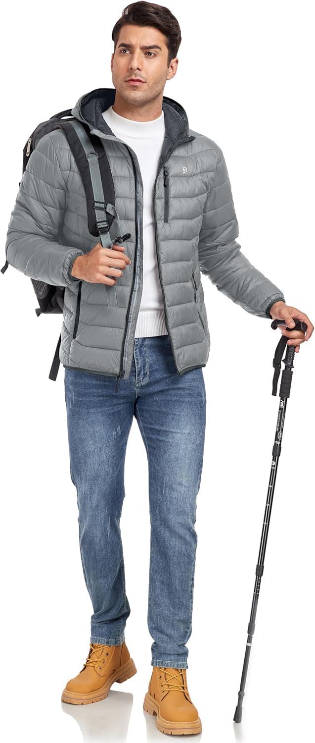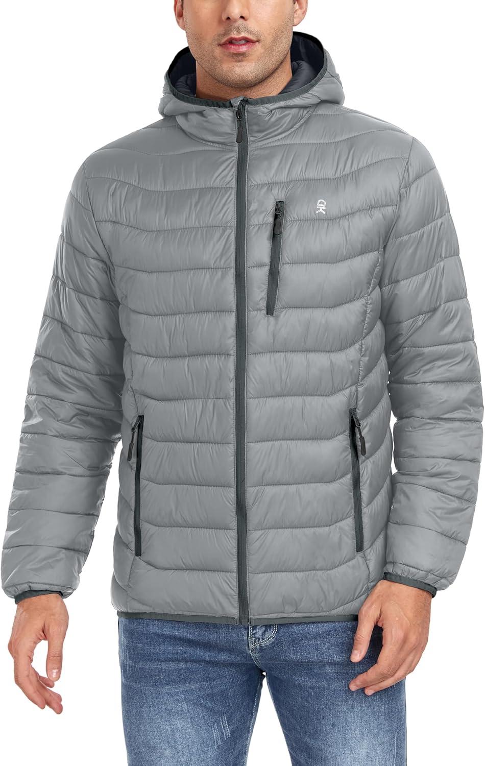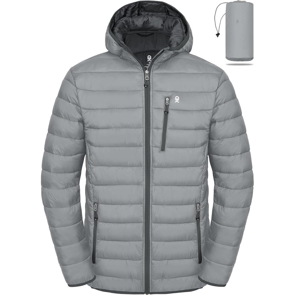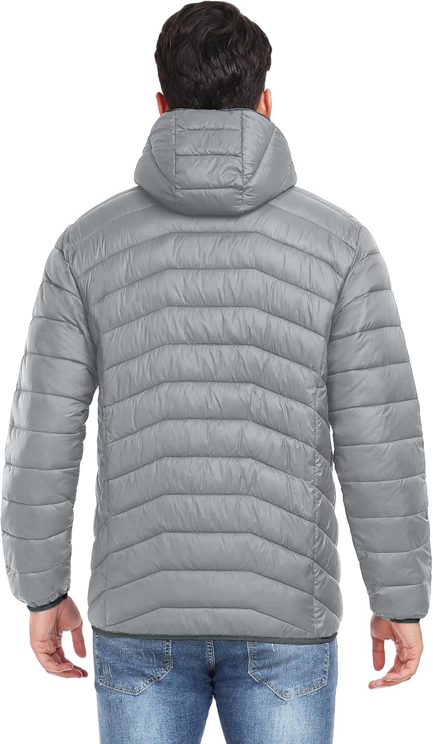 Little Donkey Andy Men’s Warm Waterproof Puffer Jacket Hooded Windproof Winter Coat with Recycled Insulation(Packable-light Grey)