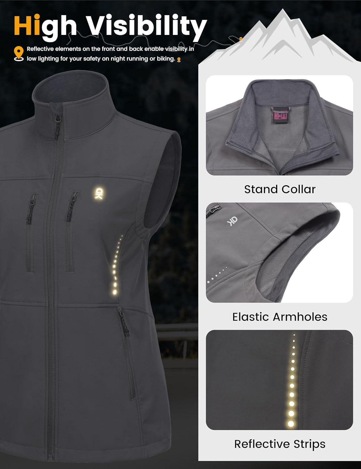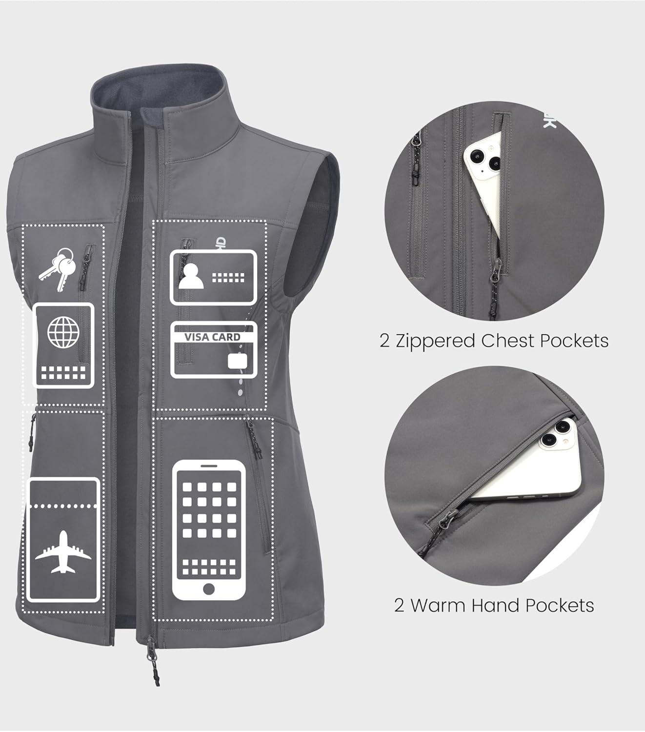 Little Donkey Andy Women’s Golf Vest Warm Fleece Lined Sleeveless Jacket for Hiking Travel Running(Gray-4 Pockets)