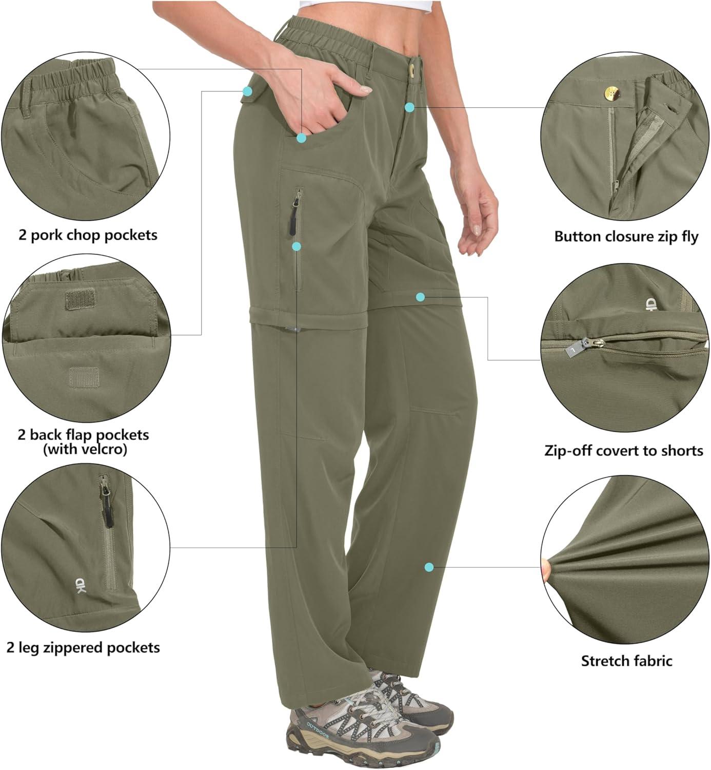 Little Donkey Andy Women’s Hiking Zip Off Pants Quick Dry Convertible Shorts UPF 50+ Lightweight Outdoor Fishing Safari Pants(Z-silver Sage)