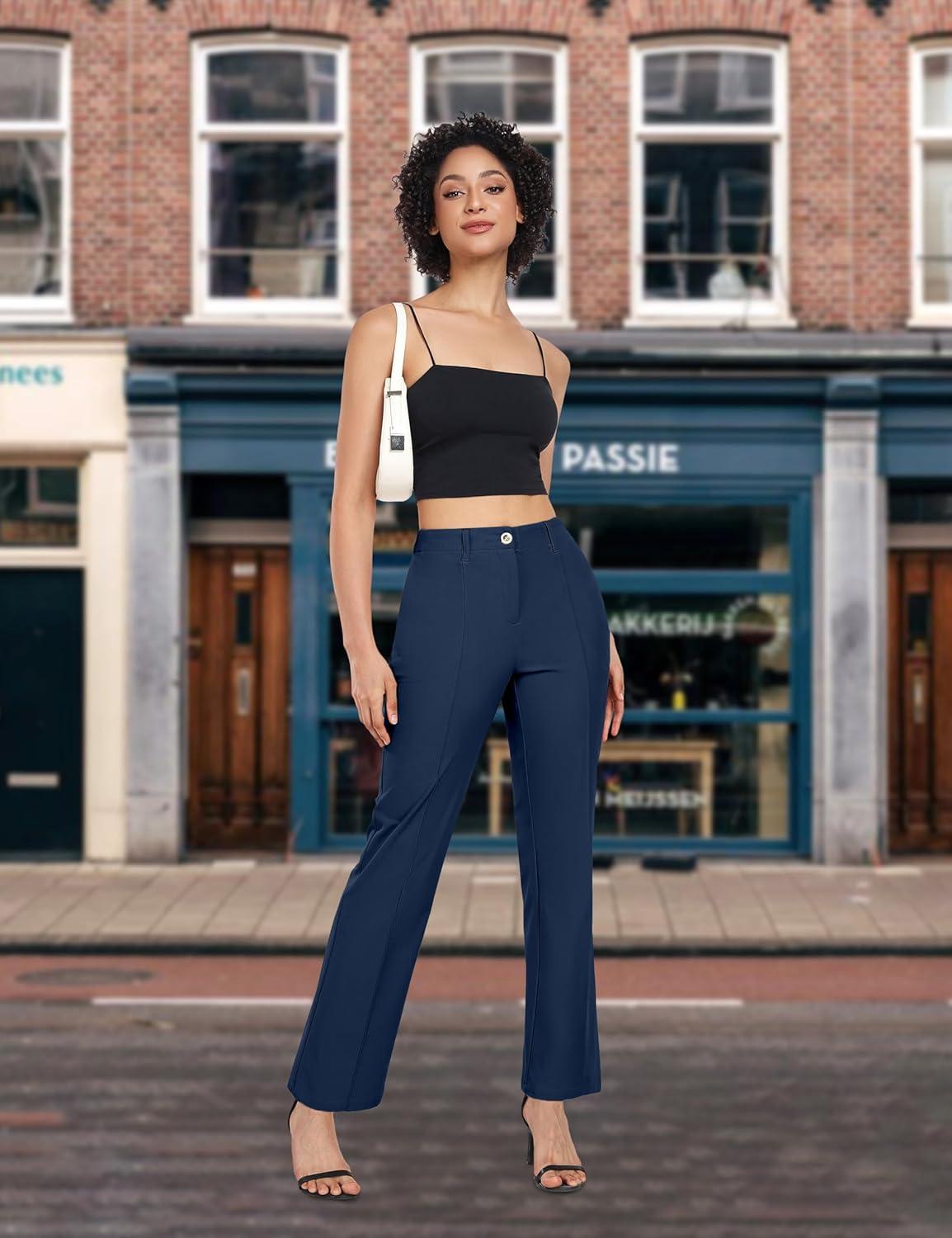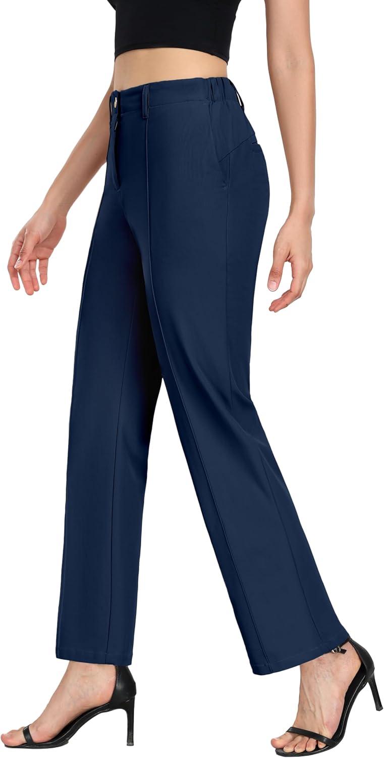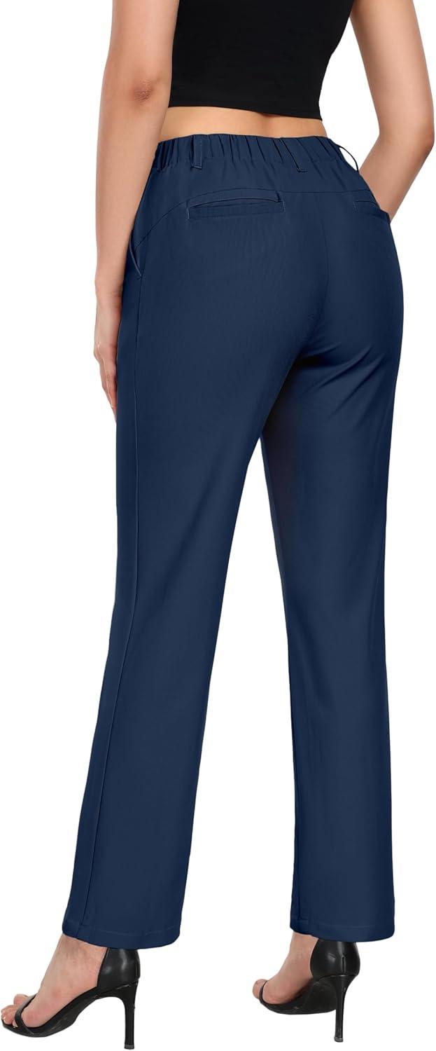Little Donkey Andy Women’s Stretchy Straight Leg Dress Pants Business Casual Elastic Waist Cropped Work Pants with Pockets(Blue)