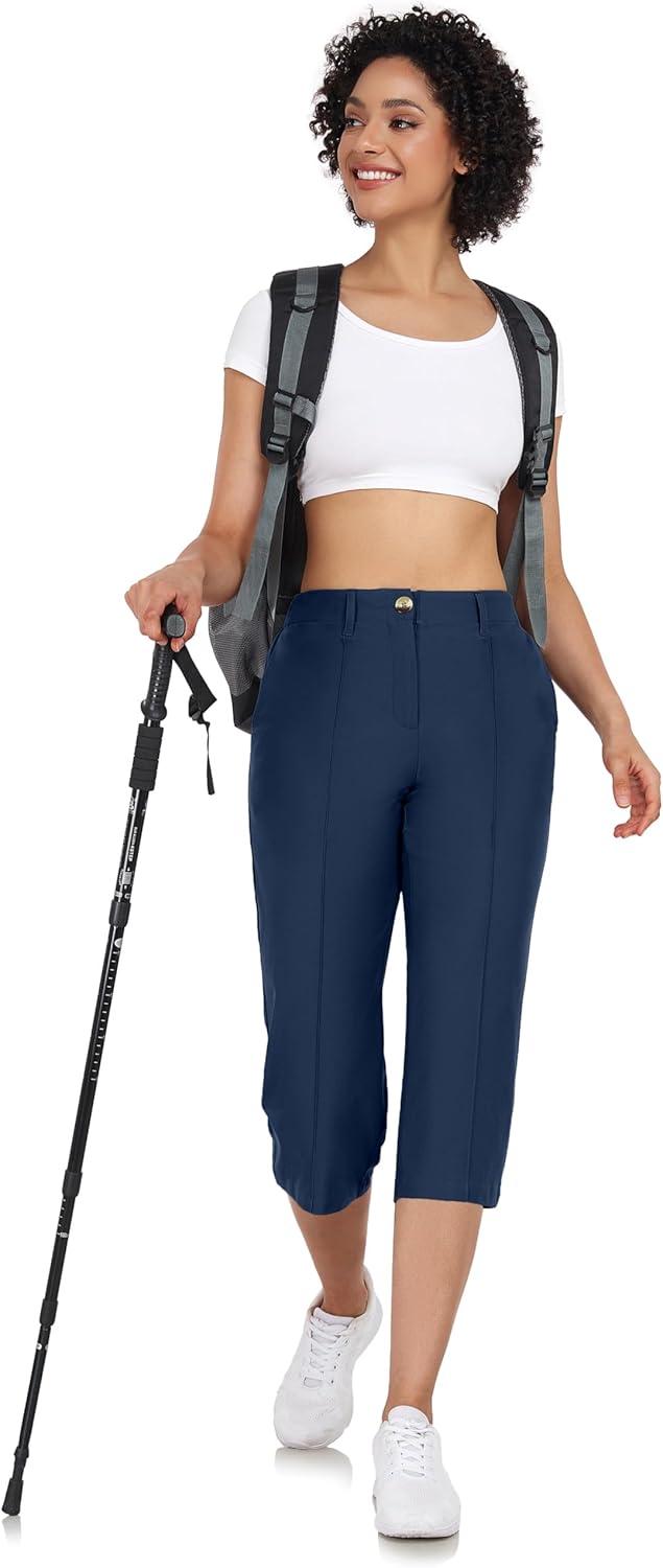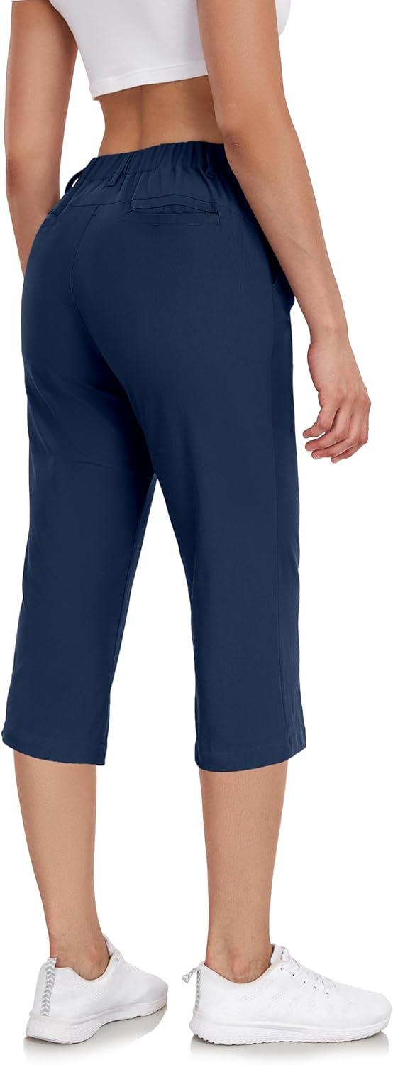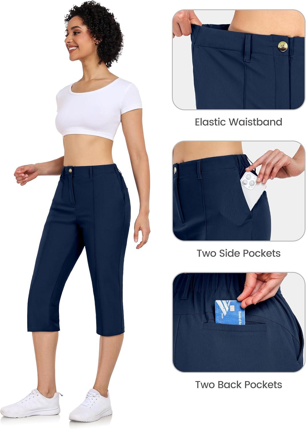 Little Donkey Andy Women’s Stretchy Straight Leg Dress Pants Business Casual Elastic Waist Cropped Work Pants with Pockets(Cropped Pants-blue)