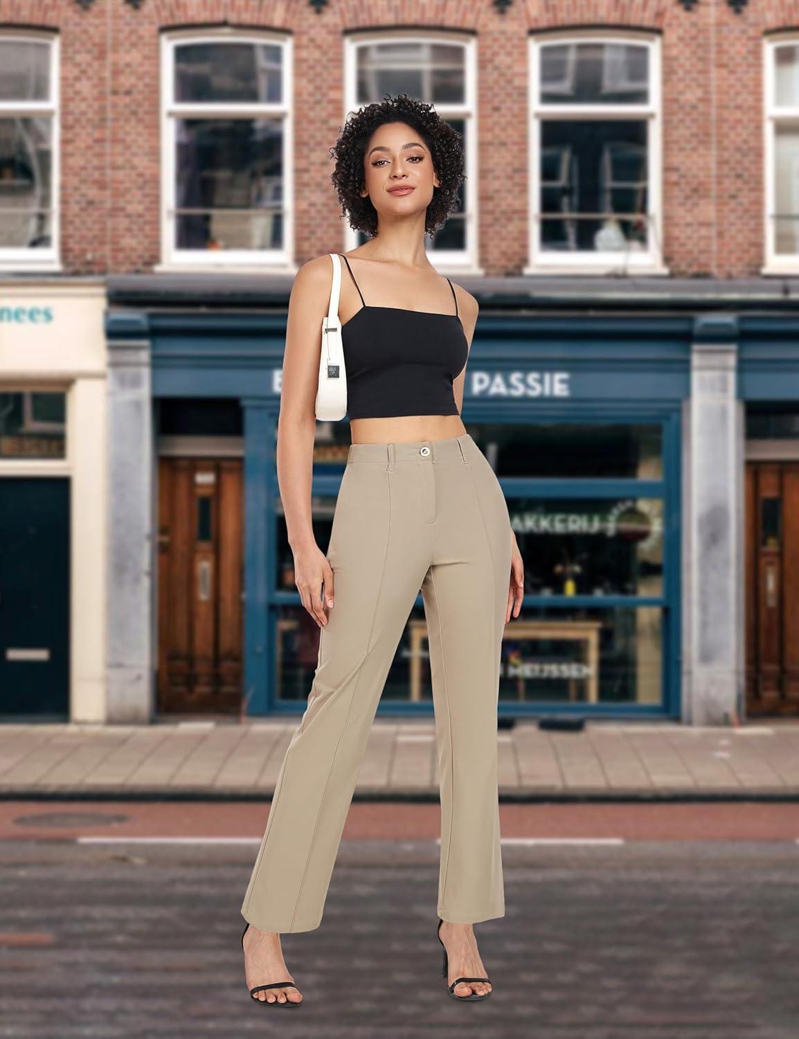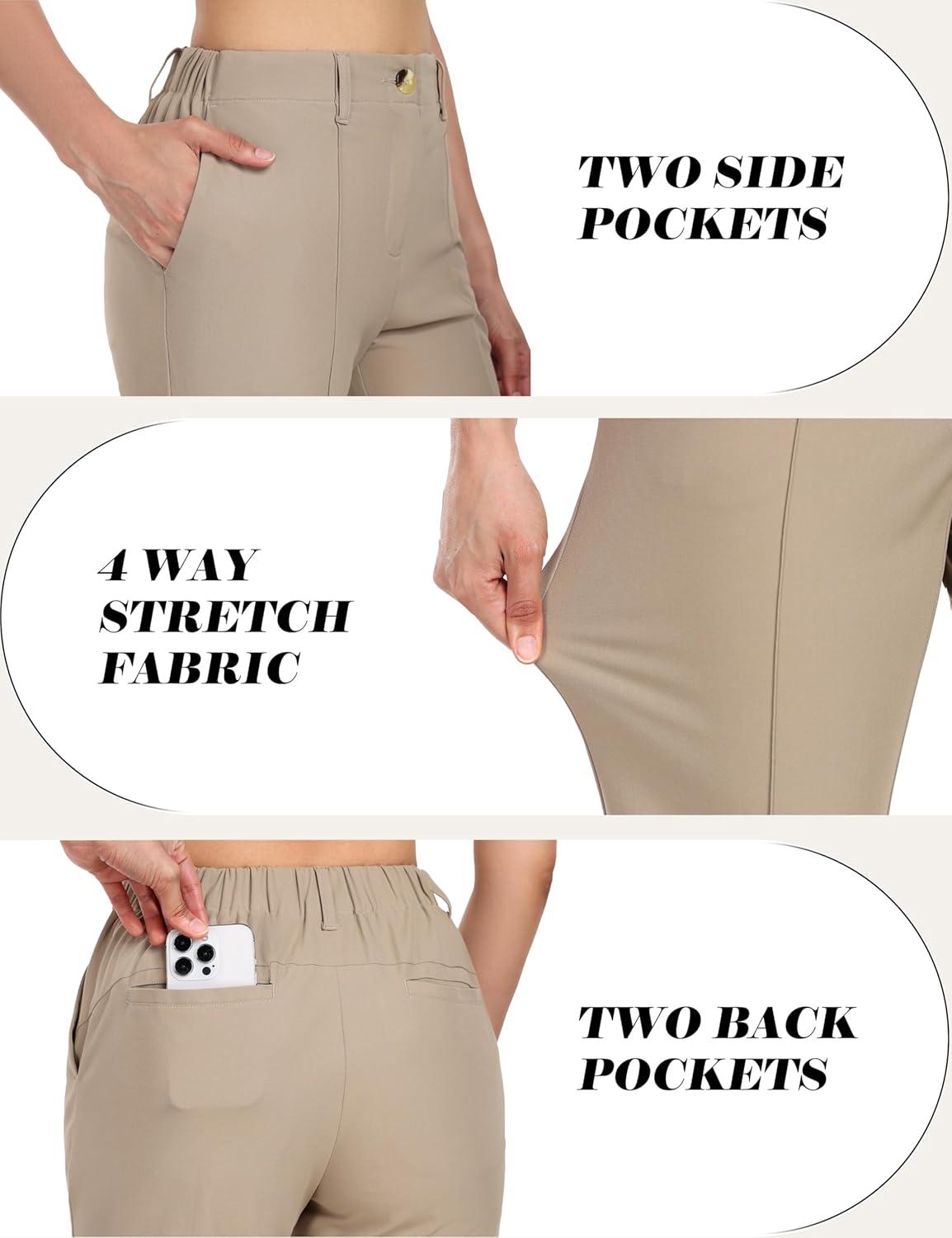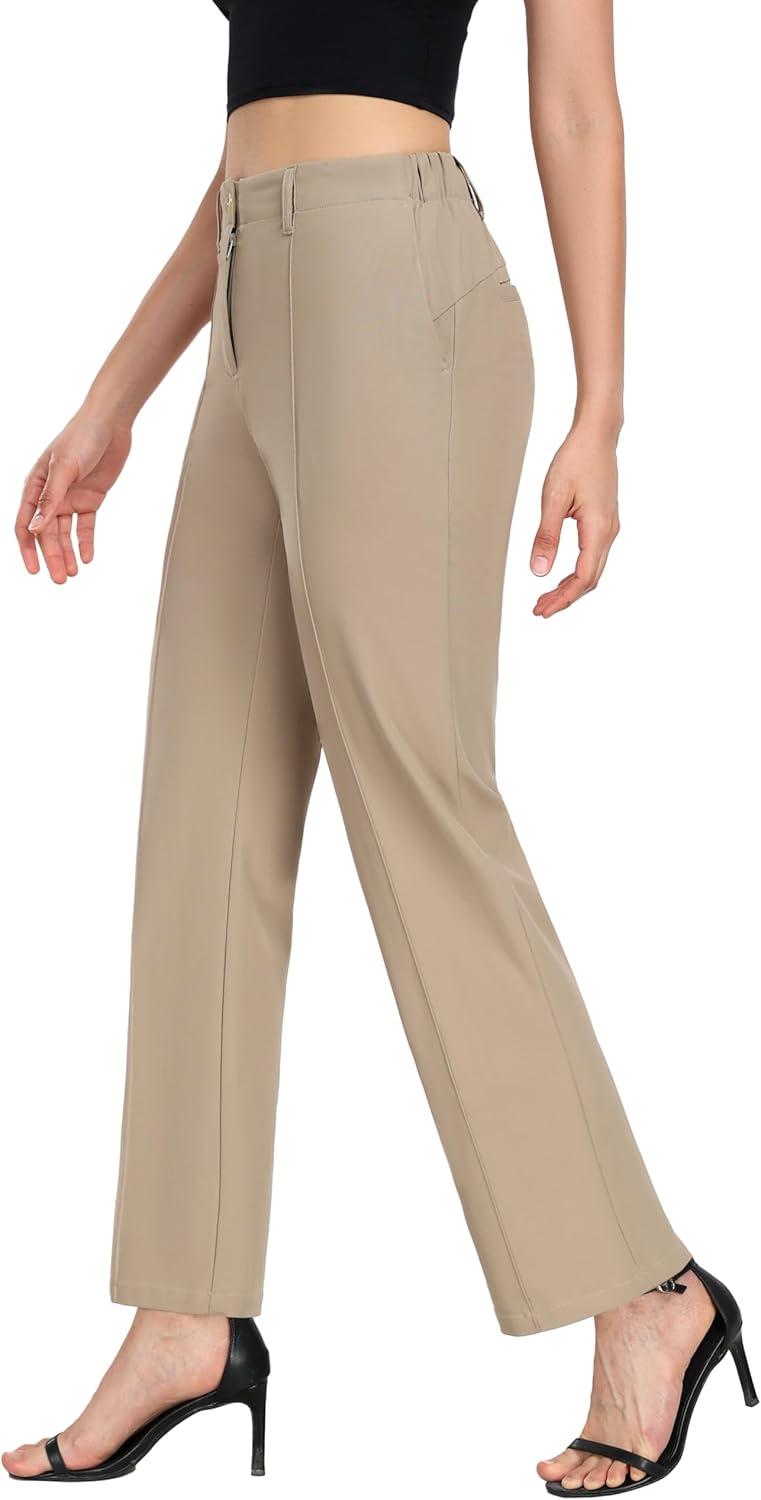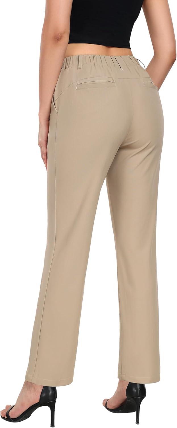 Little Donkey Andy Women’s Stretchy Straight Leg Dress Pants Business Casual Elastic Waist Cropped Work Pants with Pockets(Khaki)