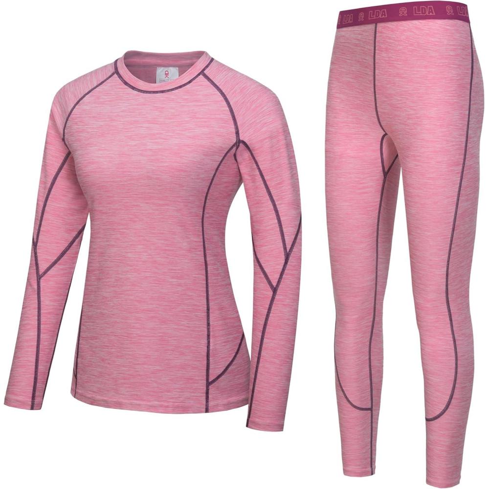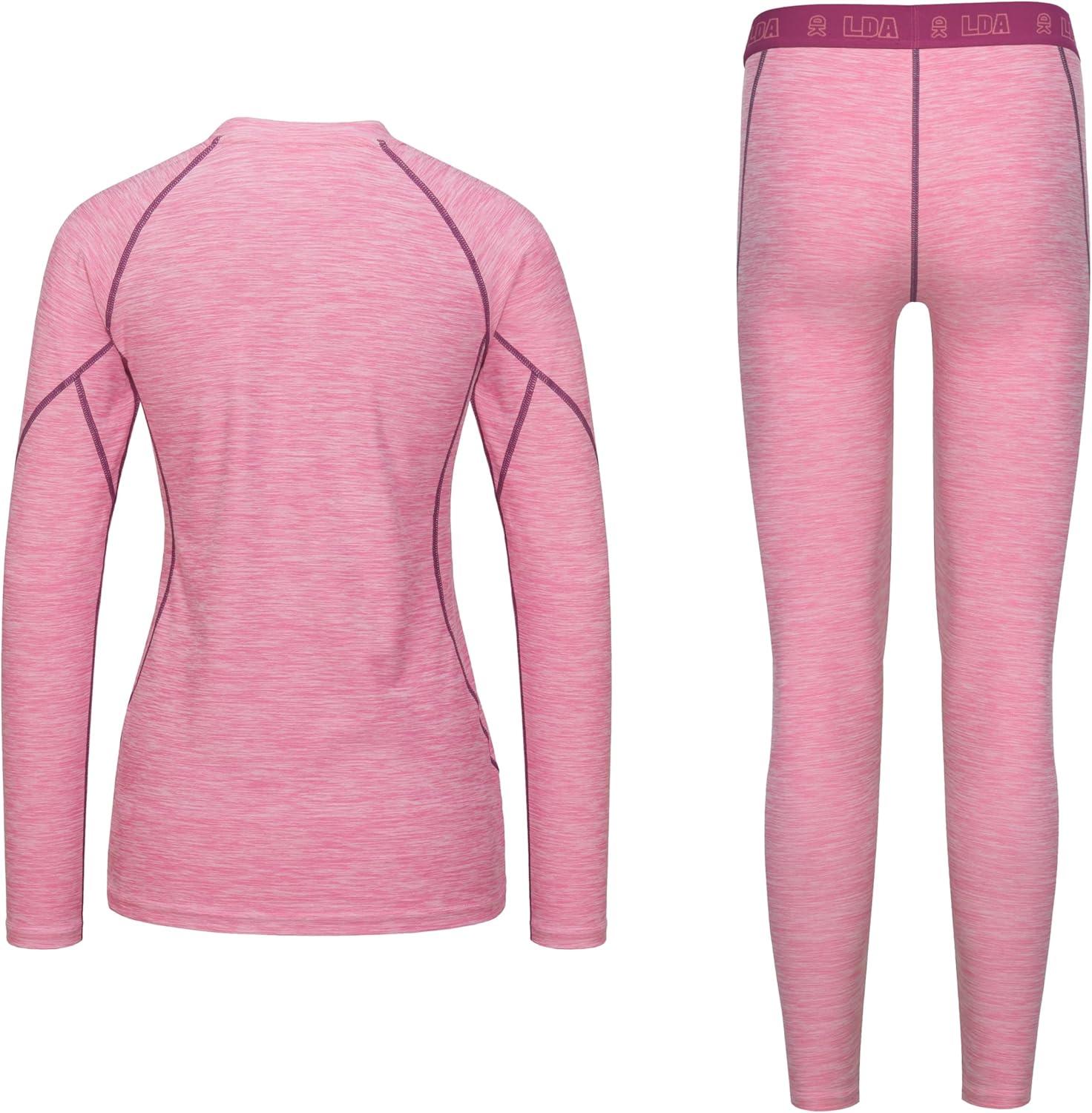 Little Donkey Andy Women’s Thermal Underwear Sets Lightweight Warm Base Layers Quick Dry Wicking Top and Bottom for Winter(Pink Heather (Thick Fabric))