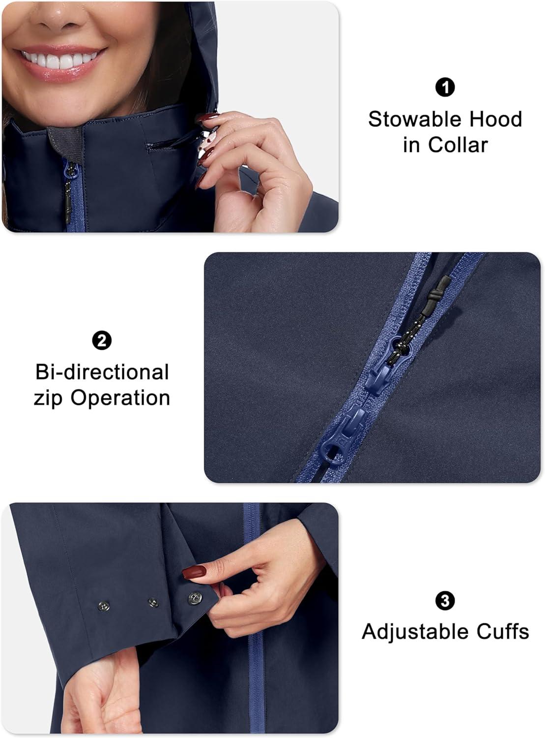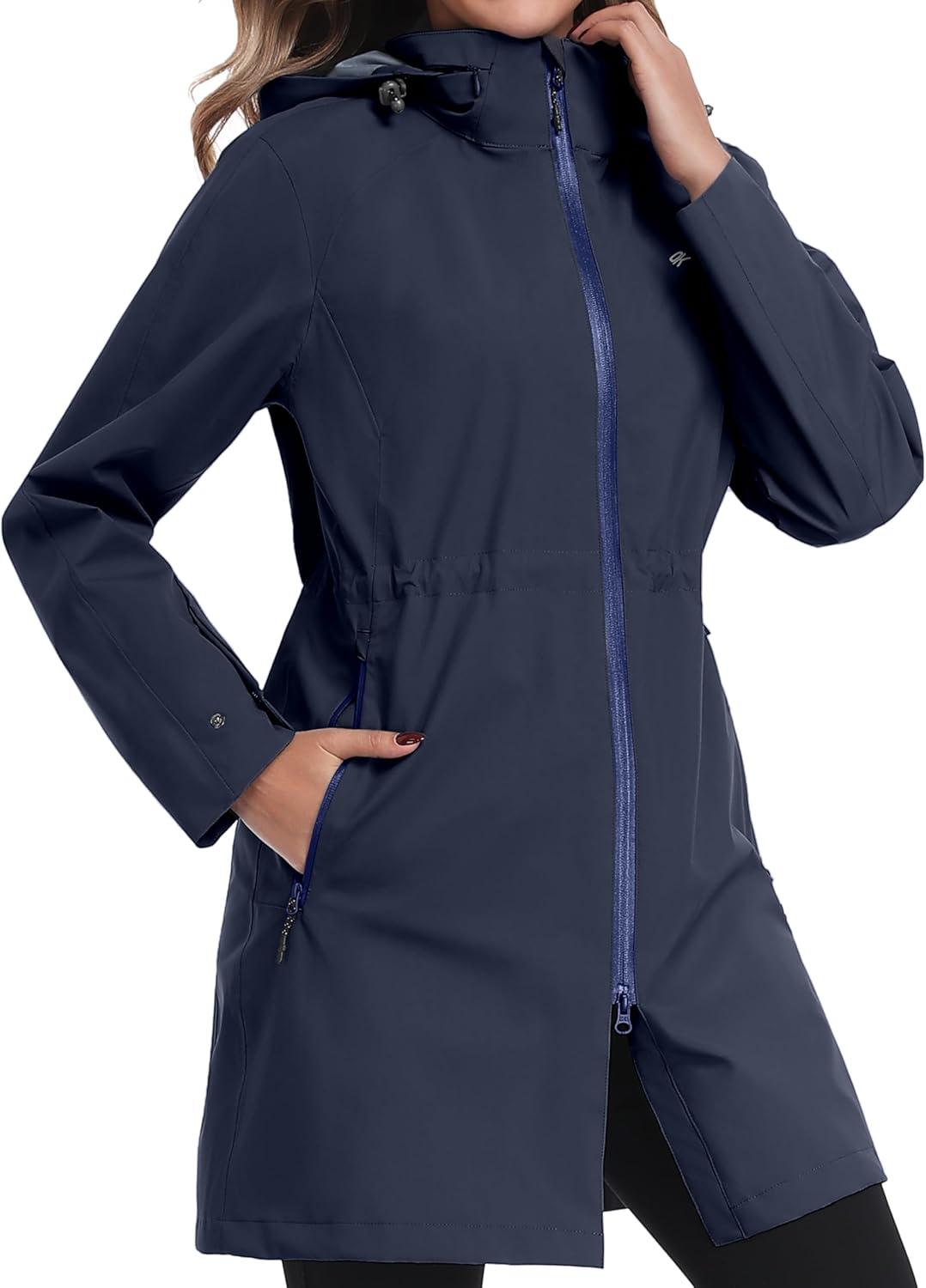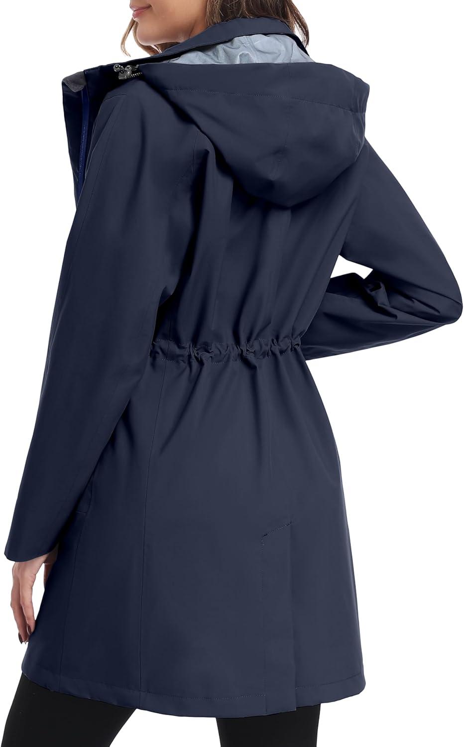 Little Donkey Andy Women’s Waterproof Mid-Length Rain Jacket with Hood Windbreaker Coat for Hiking Travel(Deep Navy)