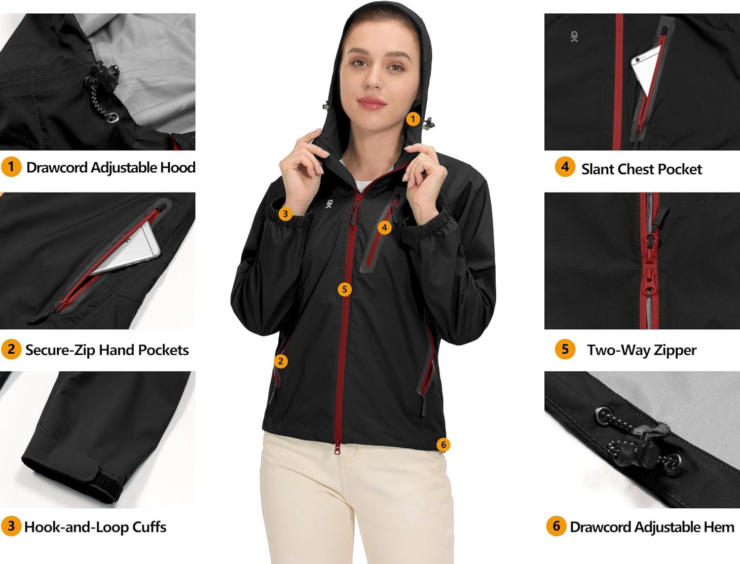 Little Donkey Andy Women’s Waterproof Rain Jacket Ultra-Lightweight Rain Shell for Cycling Running Biking(E1.black【ultra Lightweight】)