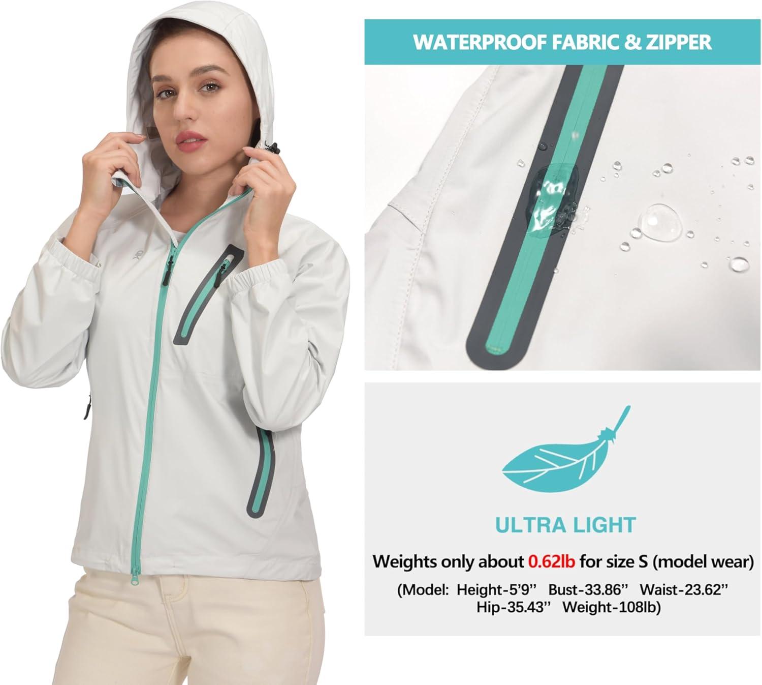Little Donkey Andy Women’s Waterproof Rain Jacket Ultra-Lightweight Rain Shell for Cycling Running Biking(E3.gray【ultra Lightweight】)