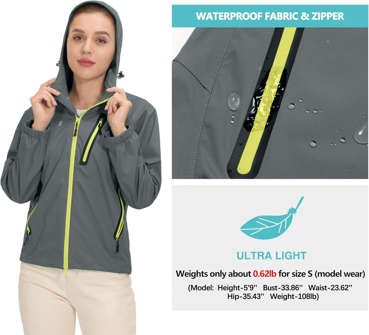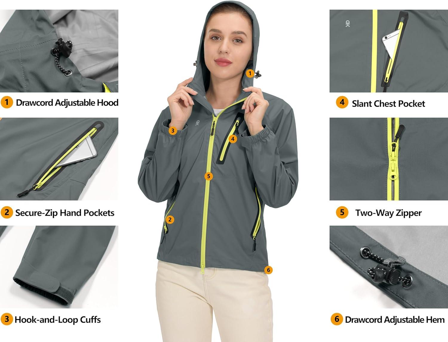Little Donkey Andy Women’s Waterproof Rain Jacket Ultra-Lightweight Rain Shell for Cycling Running Biking(E3.gray【ultra Lightweight】)